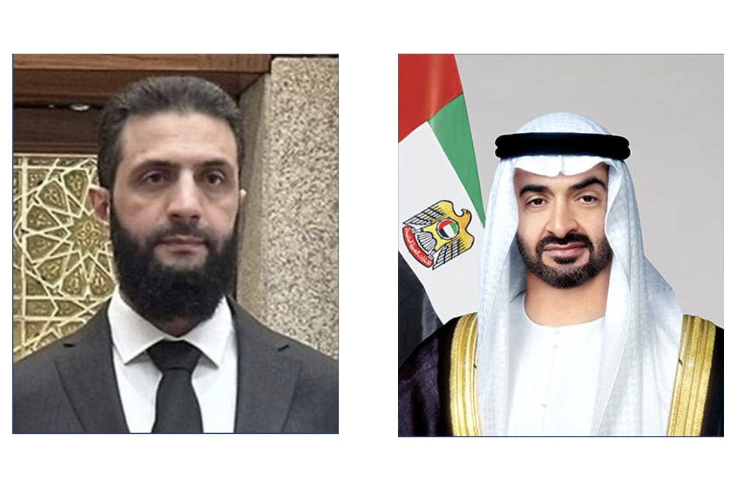 His Highness Sheikh Mohammed bin Zayed Al Nahyan, President of the State, may God protect him, received a phone call from Mr. Ahmed Al-Sharaa, Commander-in-Chief of the new Syrian administration, during which ways of strengthening fraternal relations between the two brotherly countries in areas of common interest were discussed.