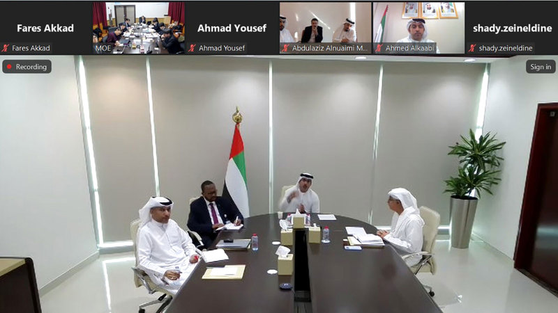 The meeting included presentations by the Ministry of Energy and Infrastructure on future initiatives, including a pilot project for managing smart water networks to reduce untapped water, in addition to managing surface water, torrents, and dams in the Emirates.